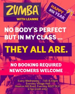 Join the Zumba party, every Wednesday at Eversley Village Hall. No booking or experience required.